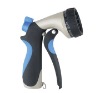 -metal spray nozzle no.SW37030 -zinc nozzle body -dual soft grip overmold -crush-resistant,glass-filled nylon handle -8-pattern spray head: mist / center / jet / cone / soaker / flat / rinse / shower -with plastic hose connector -packaging: tie on card